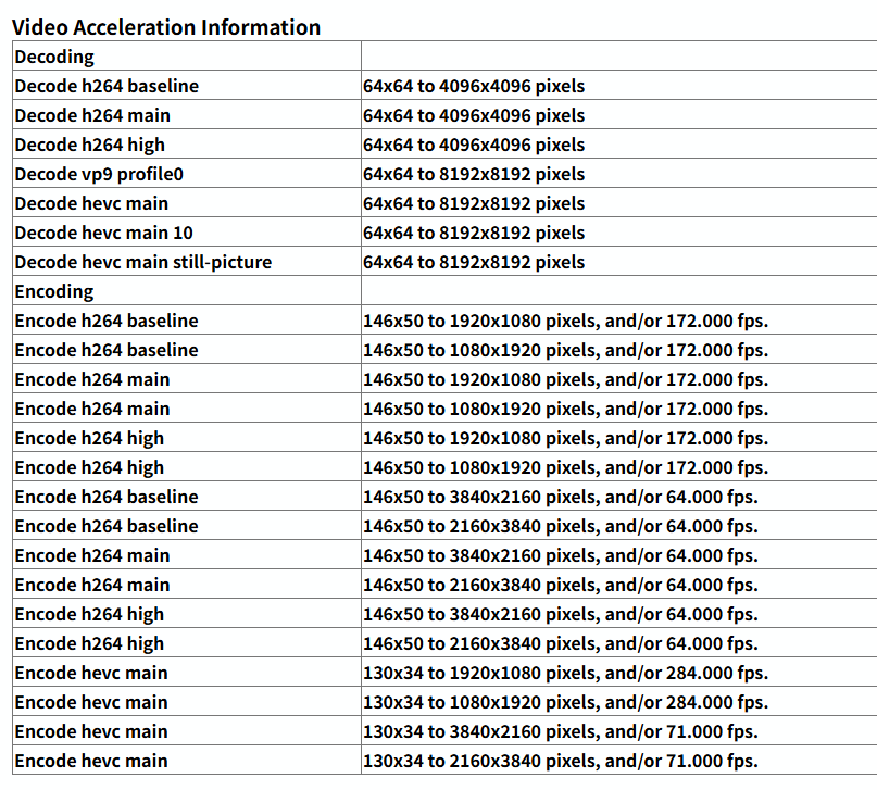 • Decode vp9 ...: あり (VP9の再生はGPU支援あり)